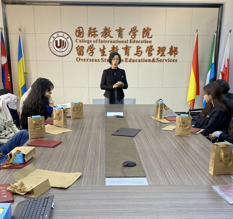 1月8日上午,2019年秋季语言生结业典礼暨欢送会在北校区3号楼311会议室举行。古天乐代言太阳集团138经理叶苗、党总支书记林爱菊、党总支副书记张雪萍,相关科室负责人、辅导员、结业语言生和交换生参加会议。会议由教学科王凯老师主持。