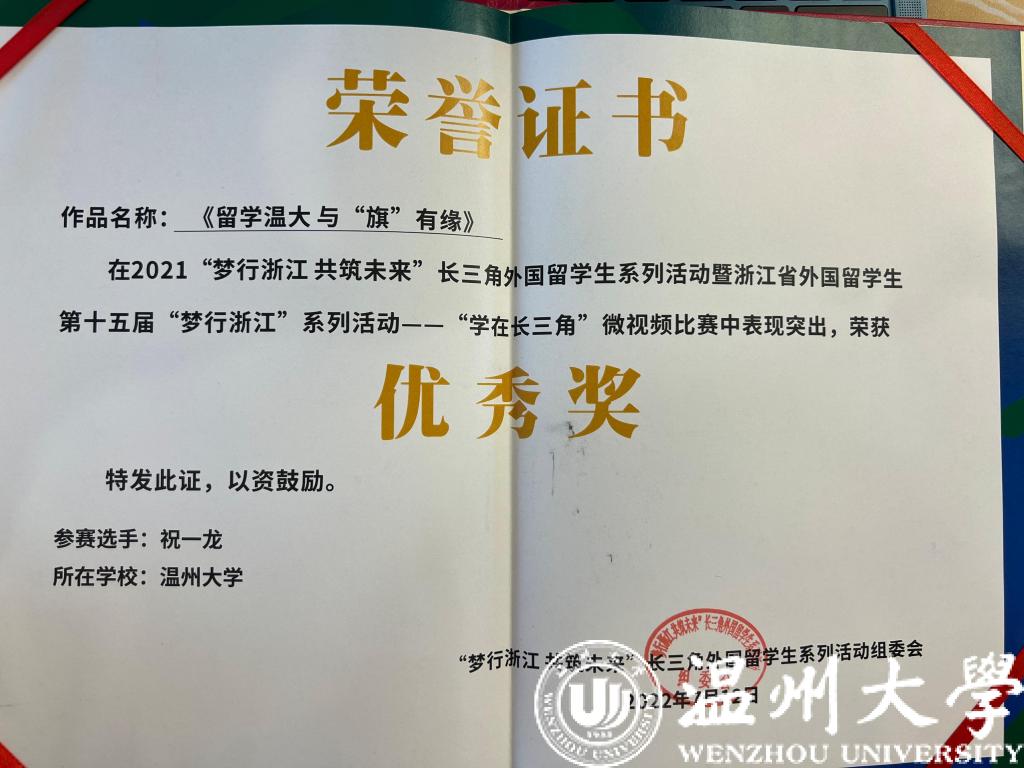 近日,公司两名职工的视频《瓯城腔调》和《留学温大 与“旗”有缘》荣获2021“学在长三角”微视频比赛优秀奖。