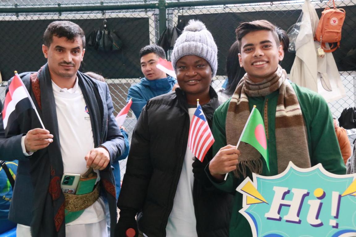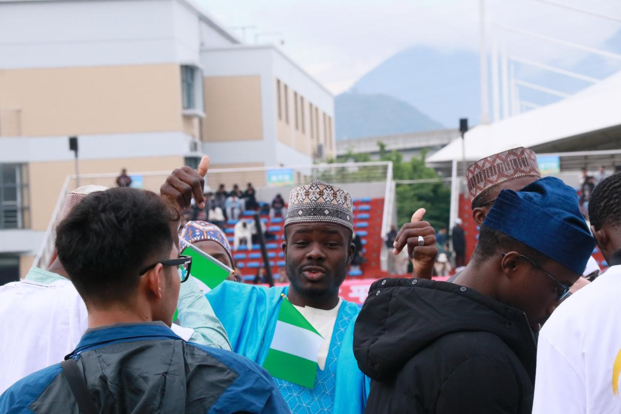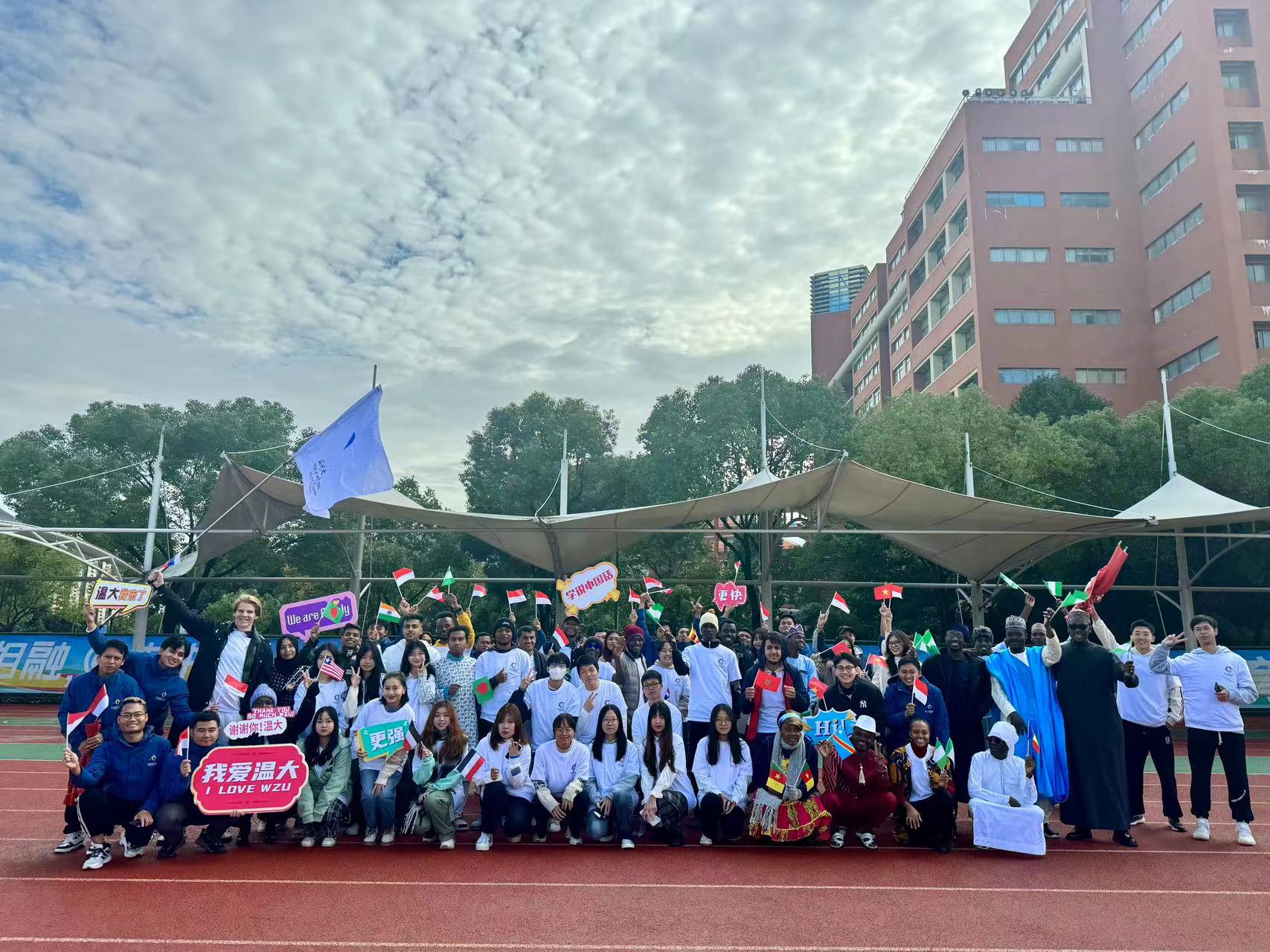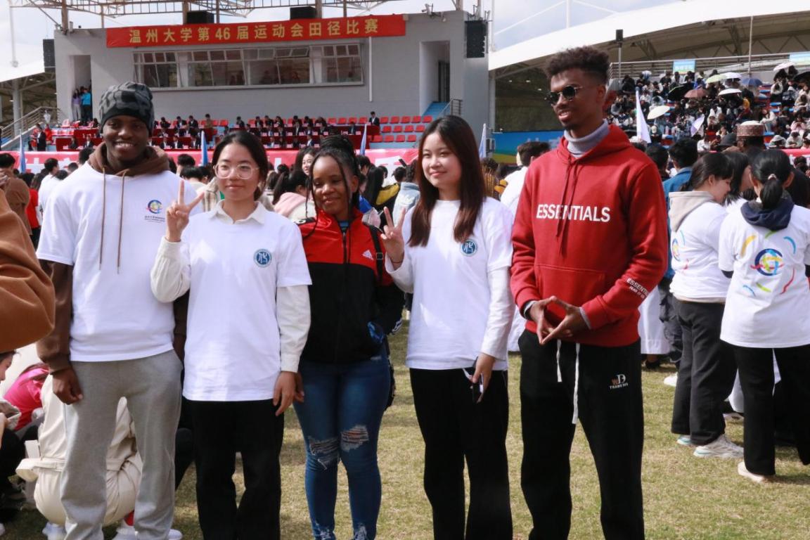看,迎面向我们走来的是古天乐代言太阳集团138代表队。来自五洲四海的国际员工们怀揣梦想汇聚温大,他们身着民族特色服饰,手举世界各国国旗,自信的步伐,热情的笑容,洋溢着体育和文化的美妙融合!“我和你,心连心,共住地球村;为梦想,千里行,相会在温大......”来自印度尼西亚的杨圣芮带领大家齐唱《我和你》,文化交流碰撞,奏响青春乐章,现场掌声不断。