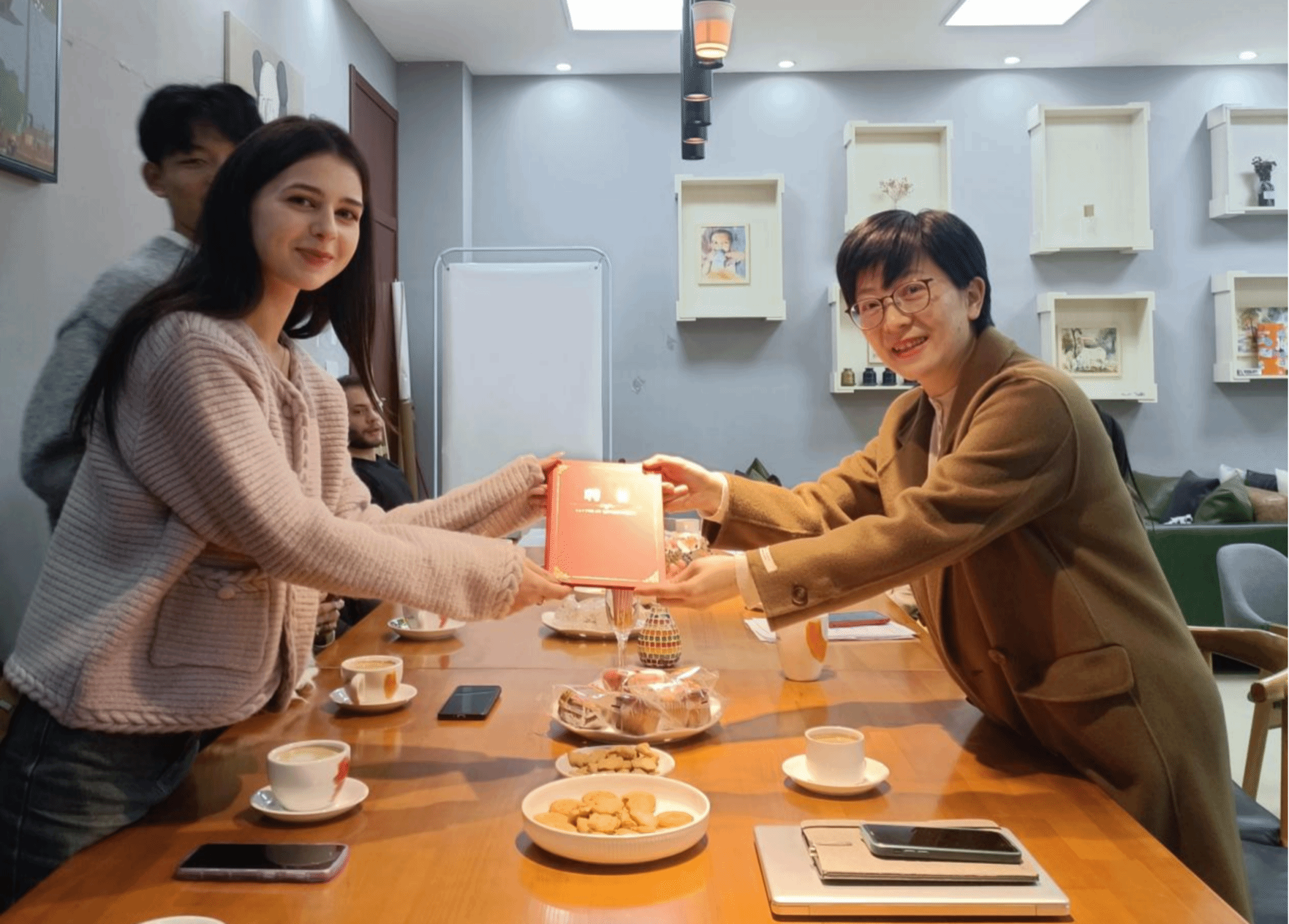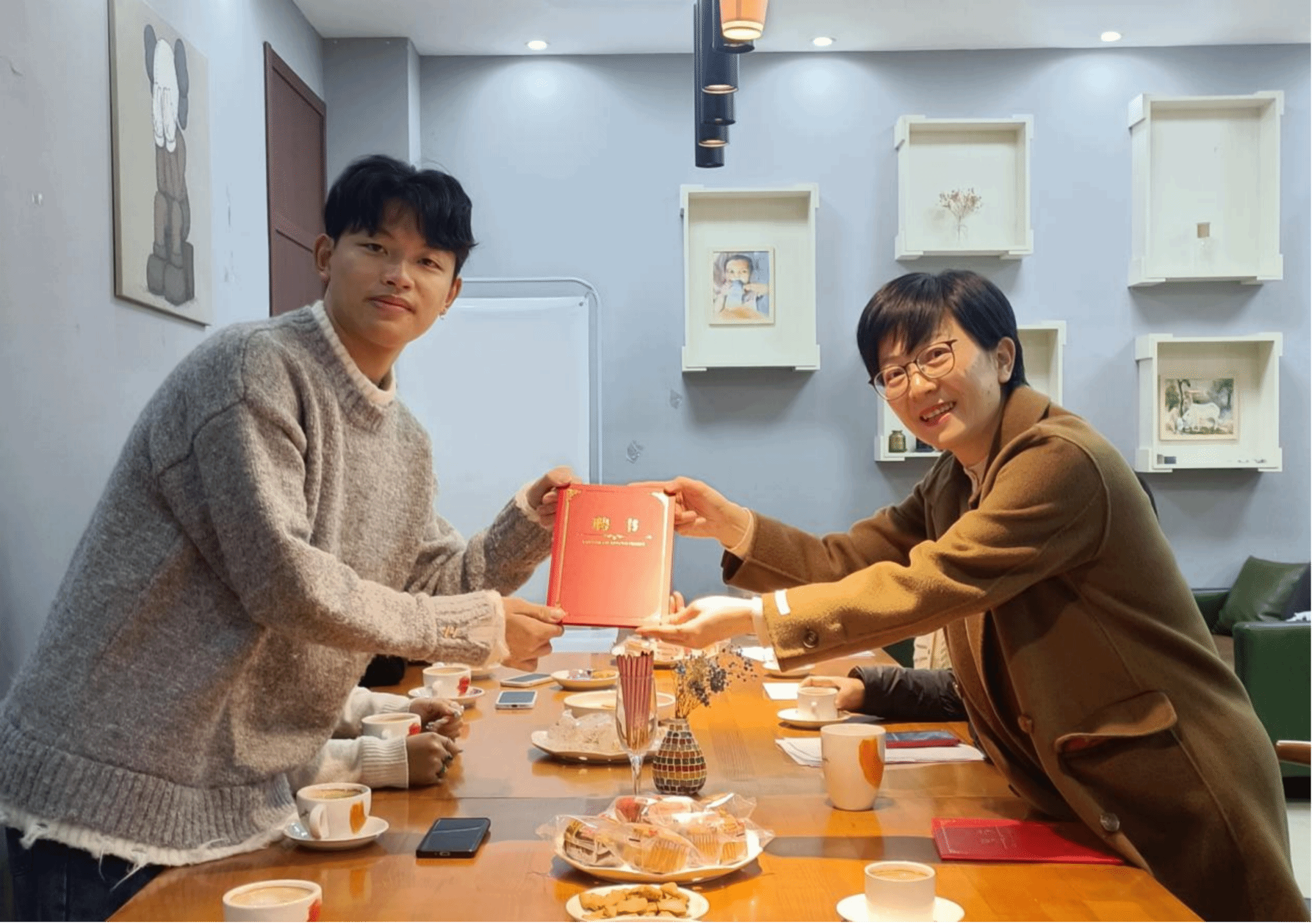 活动伊始,林爱菊书记及熊勇副经理首先对顺利完成学业的交换生们表示最热烈的祝贺,并充分肯定了交换生们在异国他乡的学习中所展现出的勇气、智慧和适应能力,以及为两所大学的交流与合作所做出的积极贡献!随后,林爱菊书记及熊勇副经理为参与本次合作项目的交换生们颁发了结业证书、员工联络员聘书以及公司为他们精心准备的结业礼物,希望同学们能够继续保持开放的心态,积极参与国际合作,为推动世界的发展做出贡献!
