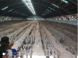 「空中丝路」调研实践团队,第一阶段是于7月16日-7月22日期间,以丝绸之路起点城市、中国西部地区重要的中心—西安地区为调研实践目标,从西安历史博物馆收集到丝绸之路的历史演变,由西安市到秦始皇兵马俑博物馆、黄帝陵、黄河壶口、华山的沿途上可以看到部分黄土高原地区受到风沙侵蚀的影响。调研的第二阶段是7月23日-7月26日,我们在西安飞往乌鲁木齐的飞机上可以俯瞰到壮观的戈壁景象。在新疆的四天时间中,我们到天山、天池等地区,感受了西部的地方文化与风土人情。在天山景区观赏维吾尔族跳舞,我非常荣幸被小玉儿公主邀请共舞。